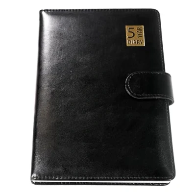 A5 Size 5 Year Undated Leatherette Padded Diary Magnetic Closure by GOOD4ALL (Black)