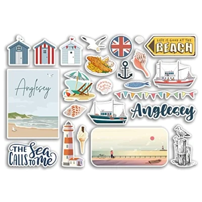 A5 Sticker Sheet Anglesey Vinyl Stickers Beach Seaside British England Coast Sea Ocean Boat Flag Travel Holiday Scrapbook Gift Aesthetic #79087