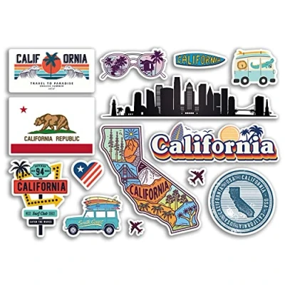 A5 Sticker Sheet California Landmarks Vinyl Stickers America States USA American Airport Stamps Skyline Flag Map Travel Holiday Scrapbooking City Luggage #79187