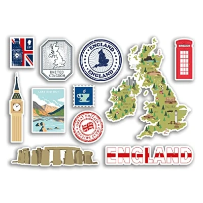 A5 Sticker Sheet England Vinyl Stickers English London GB UK Landmark Holiday City Country Airport Map Flag Food #77540