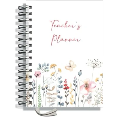 A5 Teacher Planner 2026-2027: Perfect for teachers, this undated planner features a page-a-day format to help you stay organised throughout the school year. Versatile Lesson Formats: Available in lesson formats 5, 6,and 8 to suit your specific teaching and lesson planning needs and timetable. Choice of Cover Designs: Available in a variety of cover designs to suit all tastes, so you can choose the one that best reflects your personal style. Durable Design: Hardback, wiro-bound with sturdy silver thick gauge steel wire binding ensures durability for everyday use. Features a hardboard cover with an anti-scuff matt laminate finish. Comprehensive Layout: 208 undated planning pages (one per day), 50 marks/registration pages, 5 timetable pages, and space for examinations, term dates, directory, and extra-curricular activities.