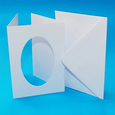 5 Pack A6 White Oval Aperture Card Blanks & Envelopes, Tri Fold 300gsm