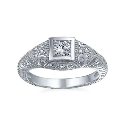 AAA CZ Victorian Vintage Art Deco Style Heirloom Milgrain 1CTW Princess Brilliant Solitaire Engagement Ring For Women .925 Sterling Silver