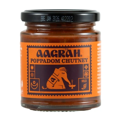 Aagrah Poppadom Chutney 200g is a mildly spiced, aromatic chutney featuring tomatoes, onions, mint, and a blend of carefully selected spices, inspired by over 40 years of Aagrah restaurant tradition—perfect for pairing with poppadoms. Suitable for vegetarians; contains barley.