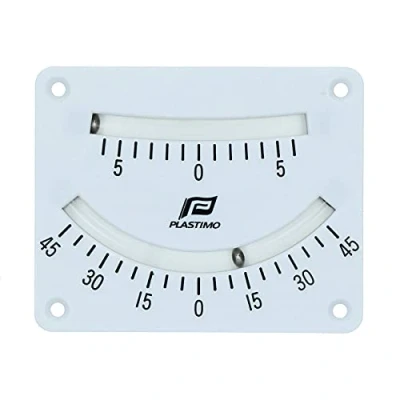 High quality inclinometer by Plastimo. Oil damped to give an accurate reading. Large ball bearing pointer. Dual scale for an accurate reading. 0-45 degrees and 0-6 degrees scale.