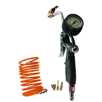 ABAC 5 Piece Air Inflator Kit for G 812IG Compressor Includes Tyre with Pressure Gauge (Tyre Gauge), m Spiral Hose, 3 Valve Adapters, Max 8 Bar
