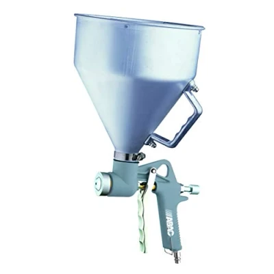 Funnel spray gun for renovation work, 4.5 kg funnel capacity especially suitable for large areas Universal use: thanks to the different nozzle diameters, the spray gun can be used for different types of plaster or cork, raw or fibre plaster. Easy to use. Air pressure and material flow can be easily adjusted on the spray gun. 4, 6 & 8 mm nozzle diameter