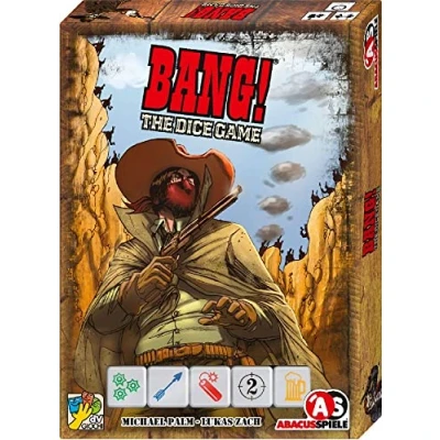Dice Version of the cult Western game “Bang!” Independent game from the Bang!Series. Fast dice fun with 5 special dice. Game Duration: approximately 15 min. Language of Game instructions:German (English language is not guaranteed)., Manufacturer: Abacusspiele Gmbh