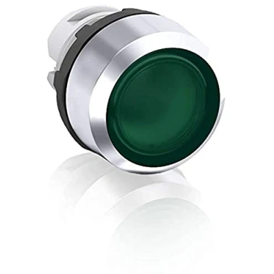 ABB MP1 31G Modular Pushbutton, Momentary, Flush, Green, Illuminated, Chrome metal, No Contact Block (ABB1SFA611100R3102)