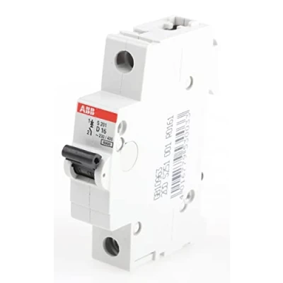 ABB S201 D16 Miniature Circuit Breaker, 1 Pole, Type D, 6/10kA Breaking Capacity, 16 Amp Current (2CDS251001R0161)