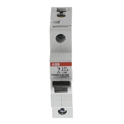 ABB S201 K2 Miniature Circuit Breaker, 1 Pole, Type K, 6/10kA Breaking Capacity, 2 Amp Current (2CDS251001R0277)