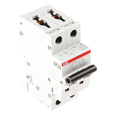 ABB S202M C1 Miniature Circuit Breaker, 2 Pole, Type C, 10/15kA Breaking Capacity, 1 Amp Current (2CDS272001R0014)