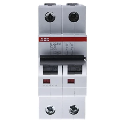 ABB S202M C3 Miniature Circuit Breaker, 2 Pole, Type C, 10/15kA Breaking Capacity, 3 Amp Current (2CDS272001R0034)