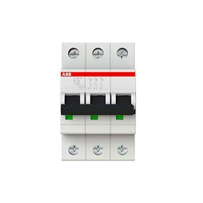 ABB S203M B10 Miniature Circuit Breaker, 3 Pole, Type B, 10kA/15kA Breaking Capacity, 10 Amp Current (2CDS273001R0105)