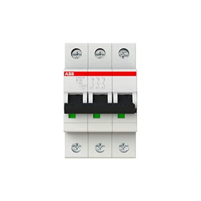 ABB S203M B20 Miniature Circuit Breaker, 3 Pole, Type B, 10kA/15kA Breaking Capacity, 20 Amp Current (2CDS273001R0205)