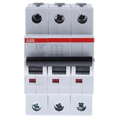 ABB S203M C40 Miniature Circuit Breaker, 3 Pole, Type C, 10kA/15kA Breaking Capacity, 40 Amp Current (2CDS273001R0404)
