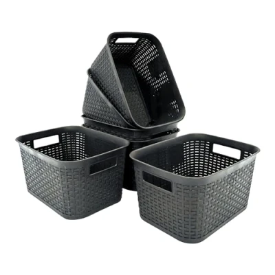 Abbaware Pack of 5 Storage Baskets, with Handle Basket, Organiser, Boxes, Plastic Box, Home & Kitchen Basket (Modern Grey)
