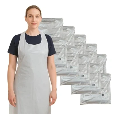 [Strength You Can Trust] Stay fully protected with aprons designed from 10–15 micron waterproof polythene that resist tears and rips better than flimsy alternatives. Perfect for kitchens, salons, schools, or healthcare, these disposable aprons for adults give you confidence to tackle any messy task. [Comfort Without Compromise] Enjoy all-day comfort with lightweight disposable aprons that don't cling or restrict. At 675 x 1011 mm, these plastic aprons give generous coverage, a secure neck loop, and waist ties, so men and women can move freely while cooking, cleaning, teaching, or crafting. [Safe for Every Bite] Made from hygienic polythene with an advanced anti-bacterial additive, these white aprons keep your catering, food prep, or serving tasks compliant with safety standards. Perfect for chefs, bakers, or care staff, each plastic apron protects food and people simultaneously. [Stay Dry & Clean] These waterproof plastic aprons for women shield you from splashes, spills, and stains in kitchens, salons, schools, and medical settings. This apron offers a reliable barrier every time, ensuring you stay mess-free, professional, and confident in even the busiest environments. [One Apron, Endless Uses] From professional catering to home cooking, tattoo studios to classrooms, our PPE aprons adapt to any situation. Versatile, protective, and hygienic, these PPE aprons disposable cover every need—making them the only white aprons you'll ever want in bulk.