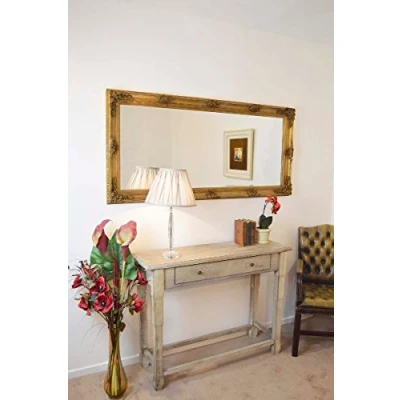 Abbey Large Gold Antique Full Length Wall Mirror 5Ft5 X 2Ft7 (165cm 78cm) New