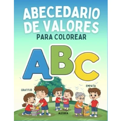 Abecedario de Valores para colorear: Libro Educativo infantil aprender letras y los Humanos la a Z, con dibujos grandes fáciles colorear niños niñas 3 8 años