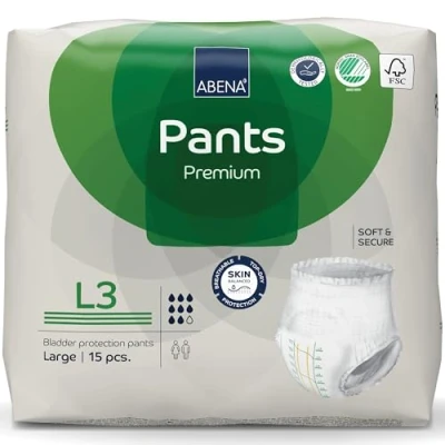 Abena Pants Premium Pull Up Incontinence Pants, Eco Labelled for Men & Women, Discreet, Protective, Breathable, Comfortable Large 3, 100 140cm Waist, 2200ml Absorbency, 15PK