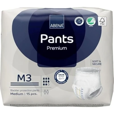Abena Pants Premium Pull Up Incontinence Pants, Eco Labelled for Men & Women, Discreet, Protective, Breathable, Comfortable, Medium 3, 80 110cm Waist, 2400ml Absorbency, 15PK