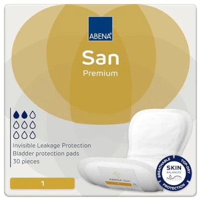 Abena San 1 Premium Incontinence Pads Women and Men. Suitable to be Used as Sanitary Pads, Men, Postpartum Panty Liners, for 200ml Absorbency 30 Pack