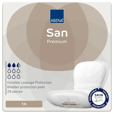 Abena San 1A Premium Incontinence Pads Women and Men. Suitable to be Used as Sanitary Pads, Men, Postpartum Panty Liners, for 200ml Absorbency 28 Pack