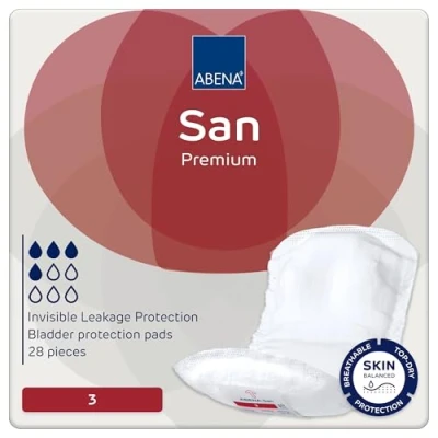 Abena San 3 Incontinence Pads Women and Men 500ml Absorbency 28 Pack Fast Absorbing Products, Discreet & Effective Shaped for
