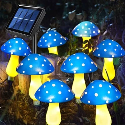 8 LIGHTING MODES: 8 light modes, vivid and eye-catching, make your garden more distinctive and make your mood better. 8 BLUE MUSHROOMS: 6 Blue Mushroom Each Set, Beautiful and Natural. They add a snap of colour and beauty to any outside garden. SOLAR POWERED AUTO WORKING: Solar means simple installation and no power bills. charged well in the day time and ran for about 12-14hours at night. No need to turn them off, they go off themselves when they are out of power or when the sensor detects light. WATERPROOF GARDEN LIGHTS: Suitable for outdoor use, these solar garden lights are waterproof. Perfect for garden, patio, flowerbed, walkway, backyard,flower garden,gazebo,christmas, thanksgiving, mothers day decorative. GARDENING GIFTS IDEA: for mom, friend, colleague, neighbors for Mother's Day, Christmas, Halloween, Anniversary, Housewarming, fall thanksgiving garden gift.