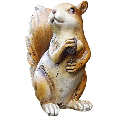 Ablerhome Decoration Sitting Red Squirrel Garden Sculpture Resin Fence Wall Freestanding Animal Ornament (Stand Squirrel)