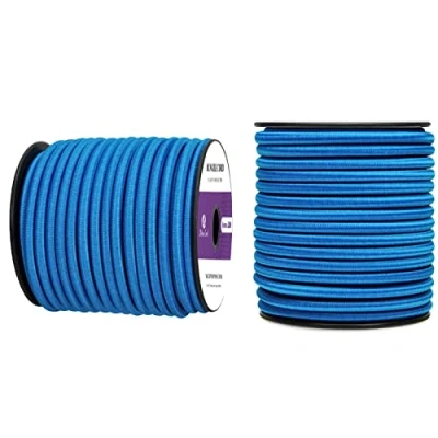 SUPERIOR MATERIAL: Bungee cord is made of a high-quality rubber core and a high-strength polyester sheath, combining industrial-grade strength and elasticity. The core is made of natural rubber, which is non-toxic, environmentally friendly, and has excellent resilience. The outer sheath effectively prevents wear and aging, ensuring all-weather protection and making it suitable for a variety of applications. TOP PERFORMANCE: This elastic cord is mold-proof, moisture-proof, UV-resistant, and corrosion-resistant, maintaining its performance in harsh environments. Bungee cord's superior tensile strength and instant rebound characteristics, combined with excellent shock absorption and cushioning effects, ensure tension balance even in strong winds, providing reliable protection for outdoor activities. MULTIPLE OPTIONS: Offering multiple diameter options and diverse length combinations, along with 10+ color choices, this cord comprehensively meets the personalized needs of different scenarios. Whether for outdoor activities or craft projects, you can flexibly choose the most suitable bungee rope to match the specific project requirements, while combining practicality and aesthetics. 6mm x 20M SPOOL: The shock cord features a convenient, reusable packaging design with a spool. The spiral structure effectively prevents tangling and knotting, and it can also be stacked for easy storage, significantly improving tidiness. When using it, you can easily cut it to the desired length, and a simple flame burn will seal the cut securely with no additional tools required, making it more efficient and convenient. MULTI-PURPOSE: Elastic ropes have a wide range of uses and are suitable for outdoor activities such as travel, camping, kayaking, and boating. It can be used to secure roof racks, trailers, tarpaulins, tent poles, and trampolines, also can easily handle challenges such as DIY crafts and home decorating. From outdoor sports to home life, bungee cord is an indispensable and practical assistant.