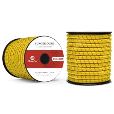 SUPERIOR MATERIAL: Bungee cord is made of a high-quality rubber core and a high-strength polyester sheath, combining industrial-grade strength and elasticity. The core is made of natural rubber, which is non-toxic, environmentally friendly, and has excellent resilience. The outer sheath effectively prevents wear and aging, ensuring all-weather protection and making it suitable for a variety of applications. TOP PERFORMANCE: This elastic cord is mold-proof, moisture-proof, UV-resistant, and corrosion-resistant, maintaining its performance in harsh environments. Bungee cord's superior tensile strength and instant rebound characteristics, combined with excellent shock absorption and cushioning effects, ensure tension balance even in strong winds, providing reliable protection for outdoor activities. MULTIPLE OPTIONS: Offering multiple diameter options and diverse length combinations, along with 10+ color choices, this cord comprehensively meets the personalized needs of different scenarios. Whether for outdoor activities or craft projects, you can flexibly choose the most suitable bungee rope to match the specific project requirements, while combining practicality and aesthetics. 8mm x 10M SPOOL: The shock cord features a convenient, reusable packaging design with a spool. The spiral structure effectively prevents tangling and knotting, and it can also be stacked for easy storage, significantly improving tidiness. When using it, you can easily cut it to the desired length, and a simple flame burn will seal the cut securely with no additional tools required, making it more efficient and convenient. MULTI-PURPOSE: Elastic ropes have a wide range of uses and are suitable for outdoor activities such as travel, camping, kayaking, and boating. It can be used to secure roof racks, trailers, tarpaulins, tent poles, and trampolines, also can easily handle challenges such as DIY crafts and home decorating. From outdoor sports to home life, bungee cord is an indispensable and practical assistant.