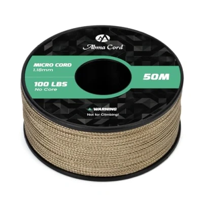 MICRO PARACORD: The 1.18mm paracord is made of high-strength polyester, has no core, and is wrapped with an abrasion resistant 8 strand braided sheath, forming a unique square structure. With a tensile strength of 45kg (100lbs) and excellent toughness, this rope demonstrates stable reliability in scenarios such as light load-bearing and everyday fixation, making it a robust and well-defined device. EXCELLENT DURABILITY: The parachute cord has excellent tensile strength, abrasion and corrosion resistance, and can be used reliably in a variety of harsh environments such as outdoors, in humid conditions and under high loads. It is not easy to wear, age or break. These characteristics extend the life of the utility rope, providing users with a more economical and reliable high-performance solution in the long run. HIGH PERFORMANCE: The paracord boasts excellent UV resistance, mildew resistance, corrosion resistance, and colorfastness, and is also wear-resistant and not easily deformed. These properties make it resistant to fading in complex outdoor environments such as sun exposure and rain, effectively preventing rope aging and strength loss, and ensuring consistent performance over time. 1.18MM x 50M SPOOL: Available in 30 colors, it can meet diverse needs from professional tasks to personal preferences. Meanwhile, the spool design of this 50m rope makes it very convenient to use, store, and carry. Users can easily cut it to any length as needed, flexibly adapting to various usage scenarios and achieving a high degree of unity between personalization and practicality. MULTI-PURPOSE ROPE: The tactical cord is suitable for DIY crafts such as bracelets, pet collars, belts, key chains, tool packaging, etc. In addition, it is also widely used in camping, fishing and hiking, because of its high quality and performance. Cord combines everyday practicality with professional needs, making it a reliable multi-functional piece of equipment. NOT FOR CLIMBING!