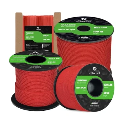 TYPE I PARACORD 100LBS: The 2mm paracord is made of high-strength nylon, which has 1 inner strand, wrapped with an abrasion resistant 16 strand braided sheath. And inner strand is made of 3 twisted yarns. With a tensile strength of 45kg (100lbs) and excellent toughness, this rope demonstrates stable reliability in scenarios such as light load-bearing and everyday fixation, making it a robust and well-defined safety device. EXCELLENT DURABILITY: The parachute cord has excellent tensile strength, abrasion and corrosion resistance, and can be used reliably in a variety of harsh environments such as outdoors, in humid conditions and under high loads. It is not easy to wear, age or break. These characteristics extend the life of the utility rope, providing users with a more economical and reliable high-performance solution in the long run. HIGH PERFORMANCE: The paracord boasts excellent UV resistance, mildew resistance, corrosion resistance, and colorfastness, as well as resistance to common chemicals. These properties make it resistant to fading in complex outdoor environments such as sun exposure and rain, effectively preventing rope aging and strength loss, and ensuring consistent performance over time. 2MM x 100M SPOOL: Available in 40+ colors and multiple lengths, it can meet diverse needs from professional tasks to personal preferences. Meanwhile, the spool design of this 100m rope makes it very convenient to use, store, and carry. Users can easily cut it to any length as needed, flexibly adapting to various usage scenarios and achieving a high degree of unity between personalization and practicality. MULTI-PURPOSE ROPE: The tactical cord is suitable for bundling, fixing objects, DIY crafts such as bracelets, pet collars, belts, key chains, tool packaging, etc. In addition, it is also widely used in camping, fishing and hiking, because of its high strength and good abrasion resistance. Cord combines everyday practicality with professional needs, making it a reliable multi-functional piece of equipment. NOT FOR CLIMBING!