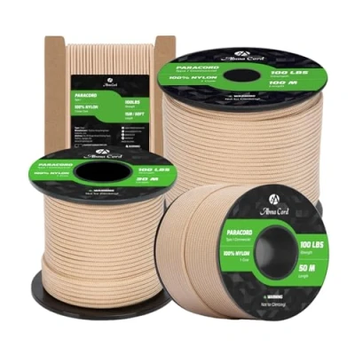 TYPE I PARACORD 100LBS: The 2mm paracord is made of high-strength nylon, which has 1 inner strand, wrapped with an abrasion resistant 16 strand braided sheath. And inner strand is made of 3 twisted yarns. With a tensile strength of 45kg (100lbs) and excellent toughness, this rope demonstrates stable reliability in scenarios such as light load-bearing and everyday fixation, making it a robust and well-defined safety device. EXCELLENT DURABILITY: The parachute cord has excellent tensile strength, abrasion and corrosion resistance, and can be used reliably in a variety of harsh environments such as outdoors, in humid conditions and under high loads. It is not easy to wear, age or break. These characteristics extend the life of the utility rope, providing users with a more economical and reliable high-performance solution in the long run. HIGH PERFORMANCE: The paracord boasts excellent UV resistance, mildew resistance, corrosion resistance, and colorfastness, as well as resistance to common chemicals. These properties make it resistant to fading in complex outdoor environments such as sun exposure and rain, effectively preventing rope aging and strength loss, and ensuring consistent performance over time. 2MM x 15M CARDBOARD: Available in 40+ colors and multiple lengths, it can meet diverse needs from professional tasks to personal preferences. Meanwhile, the cardboard design of this 15m rope makes it very convenient to use, store, and carry. Users can easily cut it to any length as needed, flexibly adapting to various usage scenarios and achieving a high degree of unity between personalization and practicality. MULTI-PURPOSE ROPE: The tactical cord is suitable for bundling, fixing objects, DIY crafts such as bracelets, pet collars, belts, key chains, tool packaging, etc. In addition, it is also widely used in camping, fishing and hiking, because of its high strength and good abrasion resistance. Cord combines everyday practicality with professional needs, making it a reliable multi-functional piece of equipment. NOT FOR CLIMBING!
