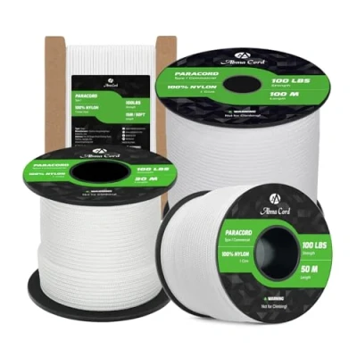 TYPE I PARACORD 100LBS: The 2mm paracord is made of high-strength nylon, which has 1 inner strand, wrapped with an abrasion resistant 16 strand braided sheath. And inner strand is made of 3 twisted yarns. With a tensile strength of 45kg (100lbs) and excellent toughness, this rope demonstrates stable reliability in scenarios such as light load-bearing and everyday fixation, making it a robust and well-defined safety device. EXCELLENT DURABILITY: The parachute cord has excellent tensile strength, abrasion and corrosion resistance, and can be used reliably in a variety of harsh environments such as outdoors, in humid conditions and under high loads. It is not easy to wear, age or break. These characteristics extend the life of the utility rope, providing users with a more economical and reliable high-performance solution in the long run. HIGH PERFORMANCE: The paracord boasts excellent UV resistance, mildew resistance, corrosion resistance, and colorfastness, as well as resistance to common chemicals. These properties make it resistant to fading in complex outdoor environments such as sun exposure and rain, effectively preventing rope aging and strength loss, and ensuring consistent performance over time. 2MM x 15M CARDBOARD: Available in 40+ colors and multiple lengths, it can meet diverse needs from professional tasks to personal preferences. Meanwhile, the cardboard design of this 15m rope makes it very convenient to use, store, and carry. Users can easily cut it to any length as needed, flexibly adapting to various usage scenarios and achieving a high degree of unity between personalization and practicality. MULTI-PURPOSE ROPE: The tactical cord is suitable for bundling, fixing objects, DIY crafts such as bracelets, pet collars, belts, key chains, tool packaging, etc. In addition, it is also widely used in camping, fishing and hiking, because of its high strength and good abrasion resistance. Cord combines everyday practicality with professional needs, making it a reliable multi-functional piece of equipment. NOT FOR CLIMBING!