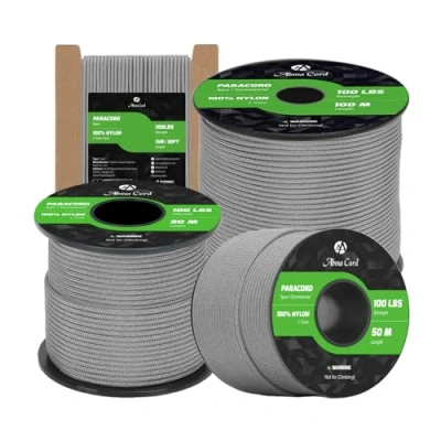 TYPE I PARACORD 100LBS: The 2mm paracord is made of high-strength nylon, which has 1 inner strand, wrapped with an abrasion resistant 16 strand braided sheath. And inner strand is made of 3 twisted yarns. With a tensile strength of 45kg (100lbs) and excellent toughness, this rope demonstrates stable reliability in scenarios such as light load-bearing and everyday fixation, making it a robust and well-defined safety device. EXCELLENT DURABILITY: The parachute cord has excellent tensile strength, abrasion and corrosion resistance, and can be used reliably in a variety of harsh environments such as outdoors, in humid conditions and under high loads. It is not easy to wear, age or break. These characteristics extend the life of the utility rope, providing users with a more economical and reliable high-performance solution in the long run. HIGH PERFORMANCE: The paracord boasts excellent UV resistance, mildew resistance, corrosion resistance, and colorfastness, as well as resistance to common chemicals. These properties make it resistant to fading in complex outdoor environments such as sun exposure and rain, effectively preventing rope aging and strength loss, and ensuring consistent performance over time. 2MM x 50M SPOOL: Available in 40+ colors and multiple lengths, it can meet diverse needs from professional tasks to personal preferences. Meanwhile, the spool design of this 50m rope makes it very convenient to use, store, and carry. Users can easily cut it to any length as needed, flexibly adapting to various usage scenarios and achieving a high degree of unity between personalization and practicality. MULTI-PURPOSE ROPE: The tactical cord is suitable for bundling, fixing objects, DIY crafts such as bracelets, pet collars, belts, key chains, tool packaging, etc. In addition, it is also widely used in camping, fishing and hiking, because of its high strength and good abrasion resistance. Cord combines everyday practicality with professional needs, making it a reliable multi-functional piece of equipment. NOT FOR CLIMBING!