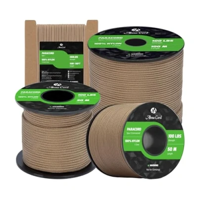 TYPE I PARACORD 100LBS: The 2mm paracord is made of high-strength nylon, which has 1 inner strand, wrapped with an abrasion resistant 16 strand braided sheath. And inner strand is made of 3 twisted yarns. With a tensile strength of 45kg (100lbs) and excellent toughness, this rope demonstrates stable reliability in scenarios such as light load-bearing and everyday fixation, making it a robust and well-defined safety device. EXCELLENT DURABILITY: The parachute cord has excellent tensile strength, abrasion and corrosion resistance, and can be used reliably in a variety of harsh environments such as outdoors, in humid conditions and under high loads. It is not easy to wear, age or break. These characteristics extend the life of the utility rope, providing users with a more economical and reliable high-performance solution in the long run. HIGH PERFORMANCE: The paracord boasts excellent UV resistance, mildew resistance, corrosion resistance, and colorfastness, as well as resistance to common chemicals. These properties make it resistant to fading in complex outdoor environments such as sun exposure and rain, effectively preventing rope aging and strength loss, and ensuring consistent performance over time. 2MM x 50M SPOOL: Available in 40+ colors and multiple lengths, it can meet diverse needs from professional tasks to personal preferences. Meanwhile, the spool design of this 50m rope makes it very convenient to use, store, and carry. Users can easily cut it to any length as needed, flexibly adapting to various usage scenarios and achieving a high degree of unity between personalization and practicality. MULTI-PURPOSE ROPE: The tactical cord is suitable for bundling, fixing objects, DIY crafts such as bracelets, pet collars, belts, key chains, tool packaging, etc. In addition, it is also widely used in camping, fishing and hiking, because of its high strength and good abrasion resistance. Cord combines everyday practicality with professional needs, making it a reliable multi-functional piece of equipment. NOT FOR CLIMBING!