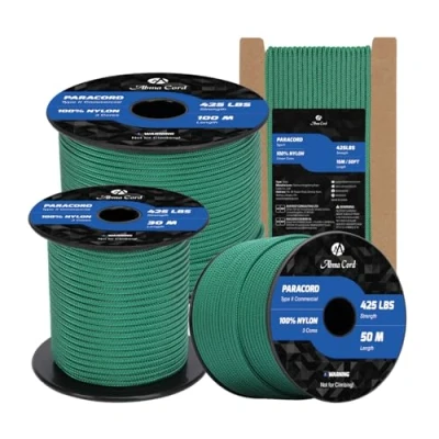 TYPE II PARACORD 425: The 3mm paracord is made of high-strength nylon, which has 3 inner strands, wrapped with an abrasion resistant 16 strand braided sheath. And each inner strand is made of 3 twisted yarns. It can withstand a load of 192kg (425lbs), combining lightweight and toughness, making cord a reliable safety equipment for extreme environments such as outdoor operations, emergency rescue. EXCELLENT DURABILITY: The parachute cord has excellent tensile strength, abrasion and corrosion resistance, and can be used reliably in a variety of harsh environments such as outdoors, in humid conditions and under high loads. It is not easy to wear, age or break. These characteristics extend the life of the utility rope, providing users with a more economical and reliable high-performance solution in the long run. HIGH PERFORMANCE: The paracord boasts excellent UV resistance, mildew resistance, corrosion resistance, and colorfastness, as well as resistance to common chemicals. These properties make it resistant to fading in complex outdoor environments such as sun exposure and rain, effectively preventing rope aging and strength loss, and ensuring consistent performance over time. 3MM x 30M SPOOL: Available in 40+ colors and multiple lengths, it can meet diverse needs from professional tasks to personal preferences. Meanwhile, the spool design of this 30m rope makes it very convenient to use, store, and carry. Users can easily cut it to any length as needed, flexibly adapting to various usage scenarios and achieving a high degree of unity between personalization and practicality. MULTI-PURPOSE ROPE: The tactical cord is suitable for bundling, fixing objects, DIY crafts such as bracelets, pet collars, belts, key chains, tool packaging, etc. In addition, it is also widely used in outdoor, camping and survival, because of its high strength and good abrasion resistance. Cord combines everyday practicality with professional needs, making it a reliable multi-functional piece of equipment. NOT FOR CLIMBING!