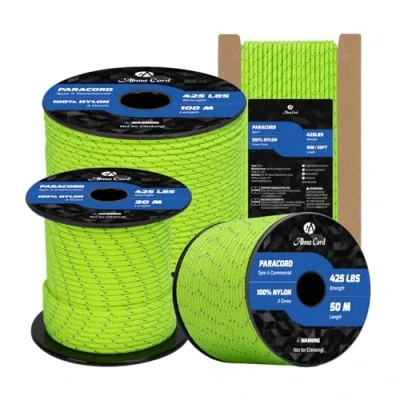 TYPE II PARACORD 425: The 3mm paracord is made of high-strength nylon, which has 3 inner strands, wrapped with an abrasion resistant 16 strand braided sheath. And each inner strand is made of 3 twisted yarns. It can withstand a load of 192kg (425lbs), combining lightweight and toughness, making cord a reliable safety equipment for extreme environments such as outdoor operations, emergency rescue. EXCELLENT DURABILITY: The parachute cord has excellent tensile strength, abrasion and corrosion resistance, and can be used reliably in a variety of harsh environments such as outdoors, in humid conditions and under high loads. It is not easy to wear, age or break. These characteristics extend the life of the utility rope, providing users with a more economical and reliable high-performance solution in the long run. HIGH PERFORMANCE: The paracord boasts excellent UV resistance, mildew resistance, corrosion resistance, and colorfastness, as well as resistance to common chemicals. These properties make it resistant to fading in complex outdoor environments such as sun exposure and rain, effectively preventing rope aging and strength loss, and ensuring consistent performance over time. 3MM x 30M SPOOL: Available in 40+ colors and multiple lengths, it can meet diverse needs from professional tasks to personal preferences. Meanwhile, the spool design of this 30m rope makes it very convenient to use, store, and carry. Users can easily cut it to any length as needed, flexibly adapting to various usage scenarios and achieving a high degree of unity between personalization and practicality. MULTI-PURPOSE ROPE: The tactical cord is suitable for bundling, fixing objects, DIY crafts such as bracelets, pet collars, belts, key chains, tool packaging, etc. In addition, it is also widely used in outdoor, camping and survival, because of its high strength and good abrasion resistance. Cord combines everyday practicality with professional needs, making it a reliable multi-functional piece of equipment. NOT FOR CLIMBING!
