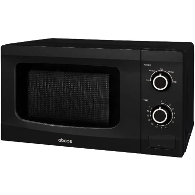 General description This Abode black manual microwave combines sleek design with powerful performance, making it the perfect addition to your kitchen. With a spacious 20L capacity, it can handle all your culinary needs, whether you're defrosting leftovers or preparing a quick meal. Technical specifications Power: 700W Capacity: 20L Weight: 10.7kg Dimensions: (H)25.6 x (W)45.1 x (D)35.3 cm Power Cord Length: 1m Turntable Size: Fits plates up to 10.5 inch/26.5 cm Timer: 35-minute Power Levels: 5 Installation Easy to install with standard kitchen outlet. Usage Defrost function for thawing frozen ingredients. Dial controls for precise cooking with 5 power levels. Push button door for convenient access. 35-minute timer for setting cooking time. Other information Model: AMM2001B 1-Year Guarantee for peace of mind.