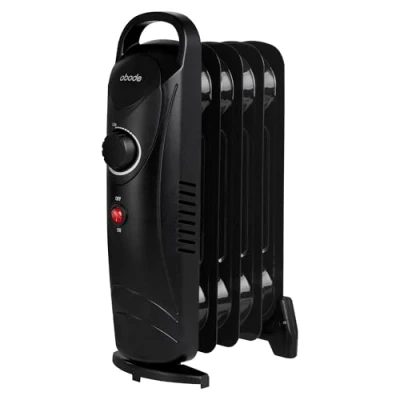 Abode 5 Fin Oil Filled Radiator 650W Portable Electric Heater in Black, Overheat Protection & Tip Over Protection, with Integrated Handle AOFR5001B