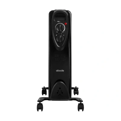 - The Abode oil-filled heater's three heat settings give you just the right level of warmth when you need it - Built with 9 radiator fins, it spreads heat across the room so you're not stuck chasing warm spots - Overheat protection and tip-over switch shut the heater off automatically to help keep things safe - There's frost protection too, so your space stays warm even when it's freezing outside - You can tweak the temperature easily using the simple dial control - Moving it around is easy - thanks to the carry handle and built-in wheels
