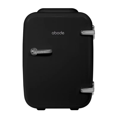 Abode Black Mini Fridge A4CLR201B 4L/6 Can Portable Thermoelectric Cooler & Warmer For Drinks, Cosmetics/Makeup/Skincare, AC/DC Power, Retro Style, Bedroom, Home, Caravan, Car