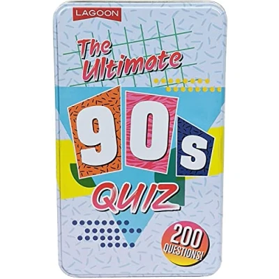 Let’s hear it for the 90s with the Ultimate 90’s Quiz! How much do you know about the decade that brought us Friends, the internet and the millennium bug? Take a trip down memory lane with over 200 multiple choice questions Packaged in a vibrant tin, it makes a great after dinner party game and nostalgic gift A brilliant family game suitable for 2+ players, age 8 years and over., Manufacturer: lagoon group