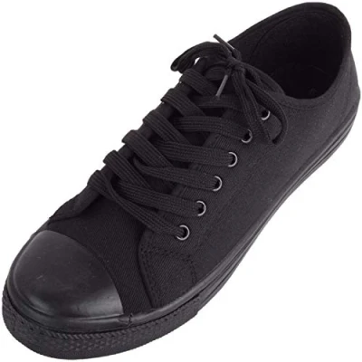 ABSOLUTE FOOTWEAR Childrens Kids Boys Girls Slip On Casual Canvas Lace Up Leisure Trainers Sneakers Pumps All Black UK 6 / EU 39