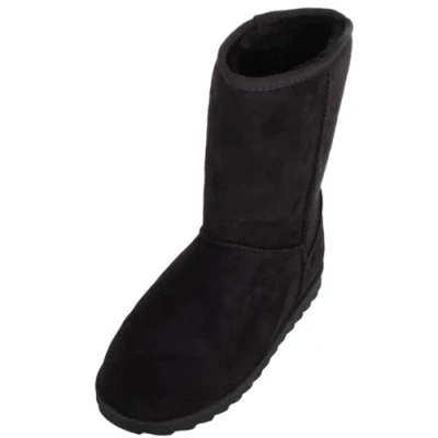ABSOLUTE FOOTWEAR Childrens Kids Easy Slip On Faux Fur Mid Calf Winter Boots Black UK Child 1 / EU 33