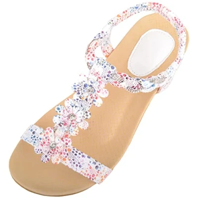 ABSOLUTE FOOTWEAR Womens Easy Slip On Floral Summer Holiday Open Toe Sandals White UK 6 / EU 39