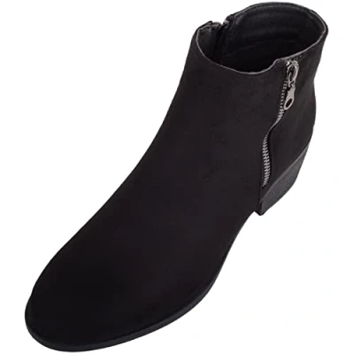 ABSOLUTE FOOTWEAR Womens Heeled Faux Leather Decorative Sliver Zipped Smart Ankle Boots Black UK 4